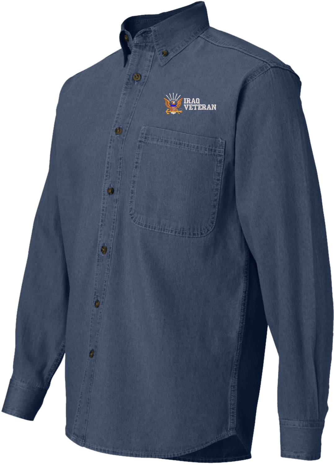 Note: Some of the Color Options pictured may not be available. Available Color Options are listed on the drop down menu above. MilitaryBest has expanded its line of apparel with this custom embroidered U.S. Navy Iraq Veteran Denim Shirt. This long sleeve button down denim shirt is made using a 100% cotton denim material. This U.S. Navy Iraq Veteran Denim Shirt will make an excellent addition to your wardrobe or a quality gift. This U.S. Navy Iraq Veteran Denim Shirt is custom embroidered at our facilities in Scottsboro, Alabama. S M L XL 2XL 3XL Body Length Back 31 1/2 32 32 1/2 33 33 1/4 34 1/4 Body Width 21 1/2 23 1/2 25 1/2 27 1/2 29 1/2 31 1/2 Sleeve Length 33 3/4 34 3/4 35 3/4 36 3/4 37 3/4 38 3/4 A percentage of the sale of each MilitaryBest item is forwarded to the licensing departments of each respective branch of service in support of the MWR (Morale, Welfare, & Recreation) program. These payments are made by either ALL4U LLC or the wholesaler from where the item originated. Our team thanks you for your service and your support of these programs.